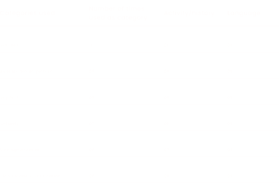 使用されたカテゴリ