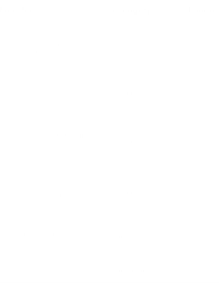 サポートチャネルから寄せられたユーザーフィードバックを確認し、プロフィールセクションに対する修正提案の一覧を作成しました。次に、主要なパターンと傾向を特定するためにAmplitudeのデータを分析しました。ユーザーフィードバックとAmplitudeデータの両方から導き出されたすべての修正候補は、優先度に基づいて順位付けされました。例として、優先順位付けスプレッドシートの一部と、参照用の優先順位付けキーを併せて示します。
