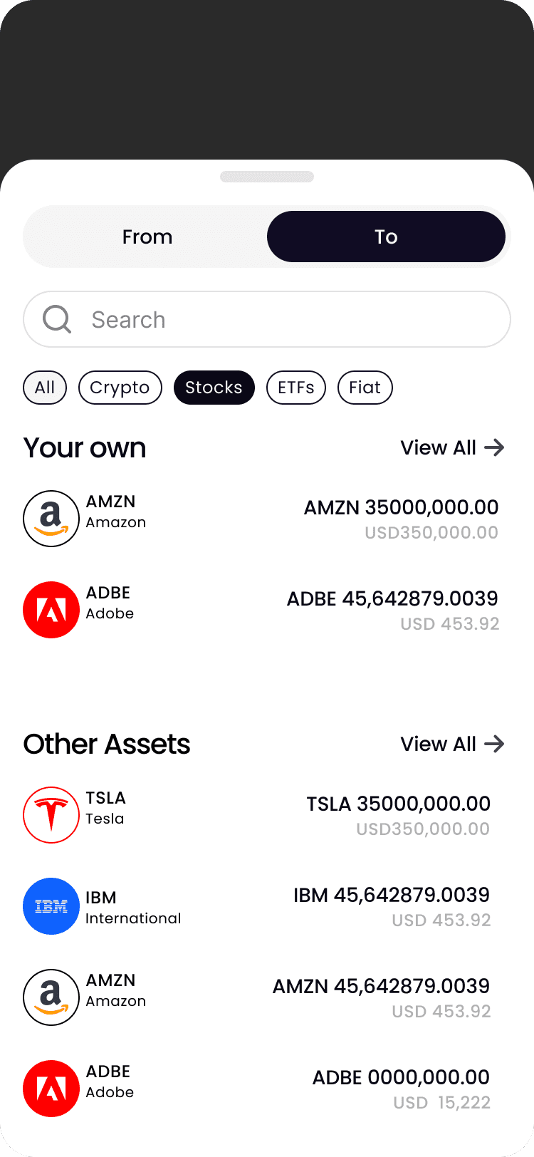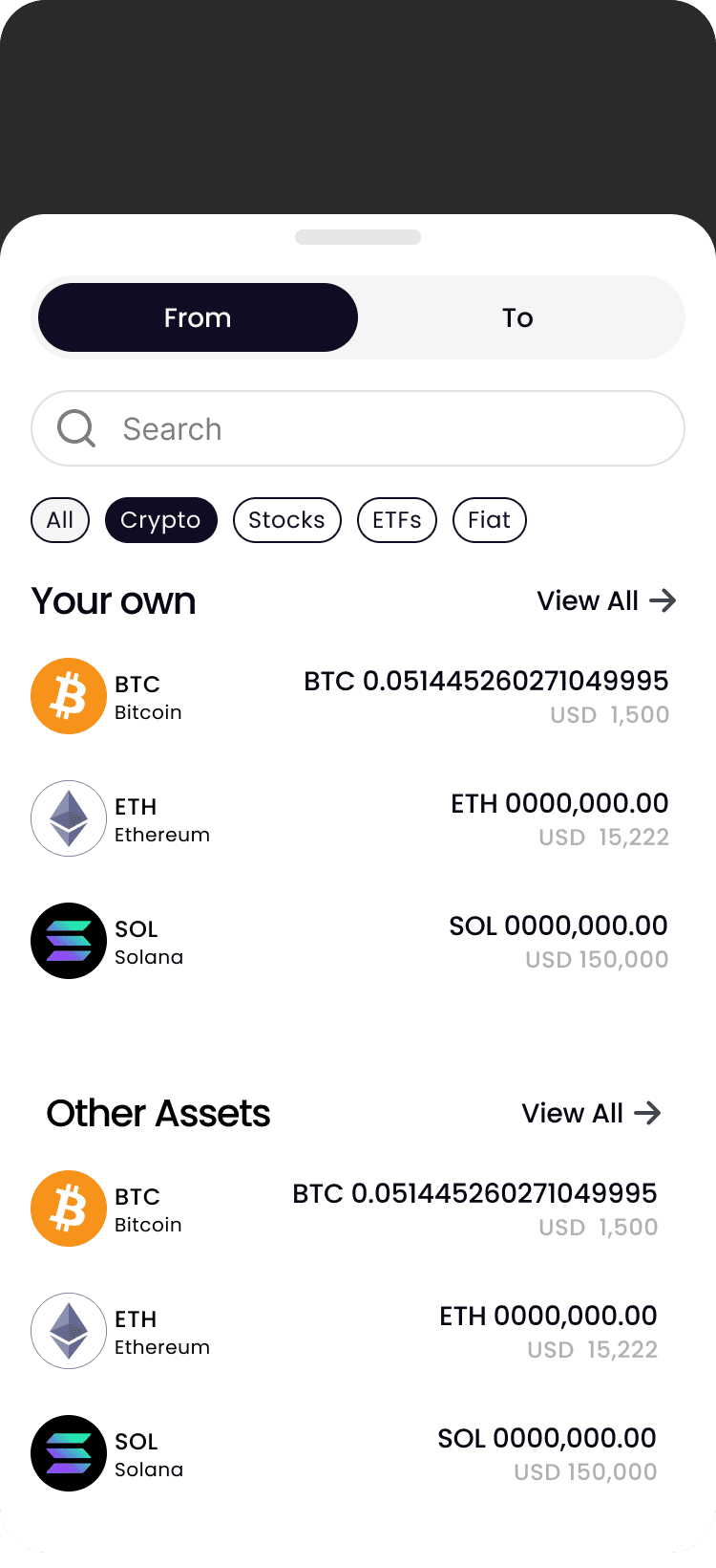 このデザインは、ユーザーが金融資産を管理・追跡するための、直感的で効率的なインターフェースを提供することを目的としています。