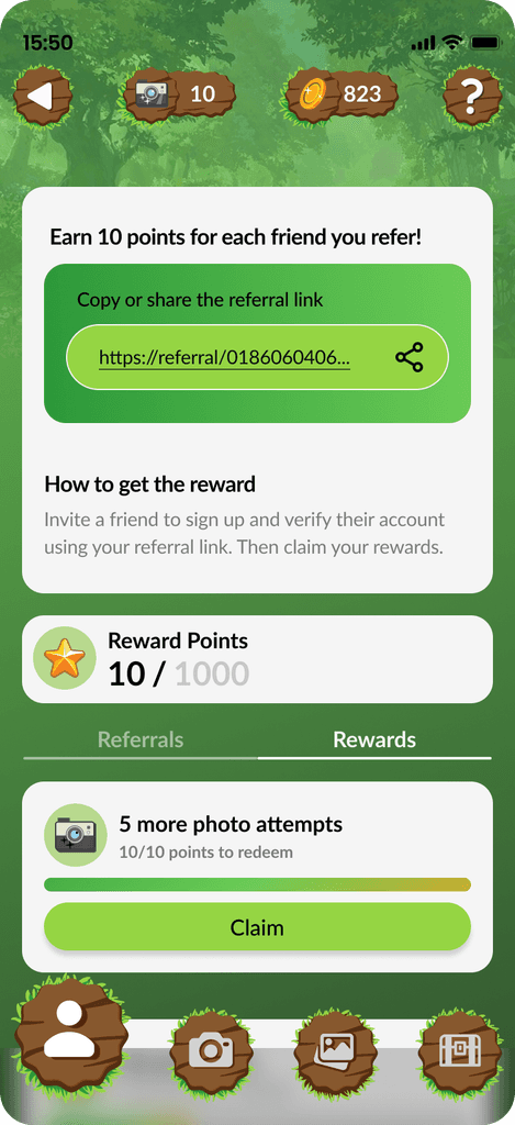 The prototype is a Minimum Viable Product. It includes the core gameplay functions, a bottom navigation bar for intuitive access, and a dedicated help section to guide new users. Additional features such as the referral status and animal guide are planned for future implementation.
